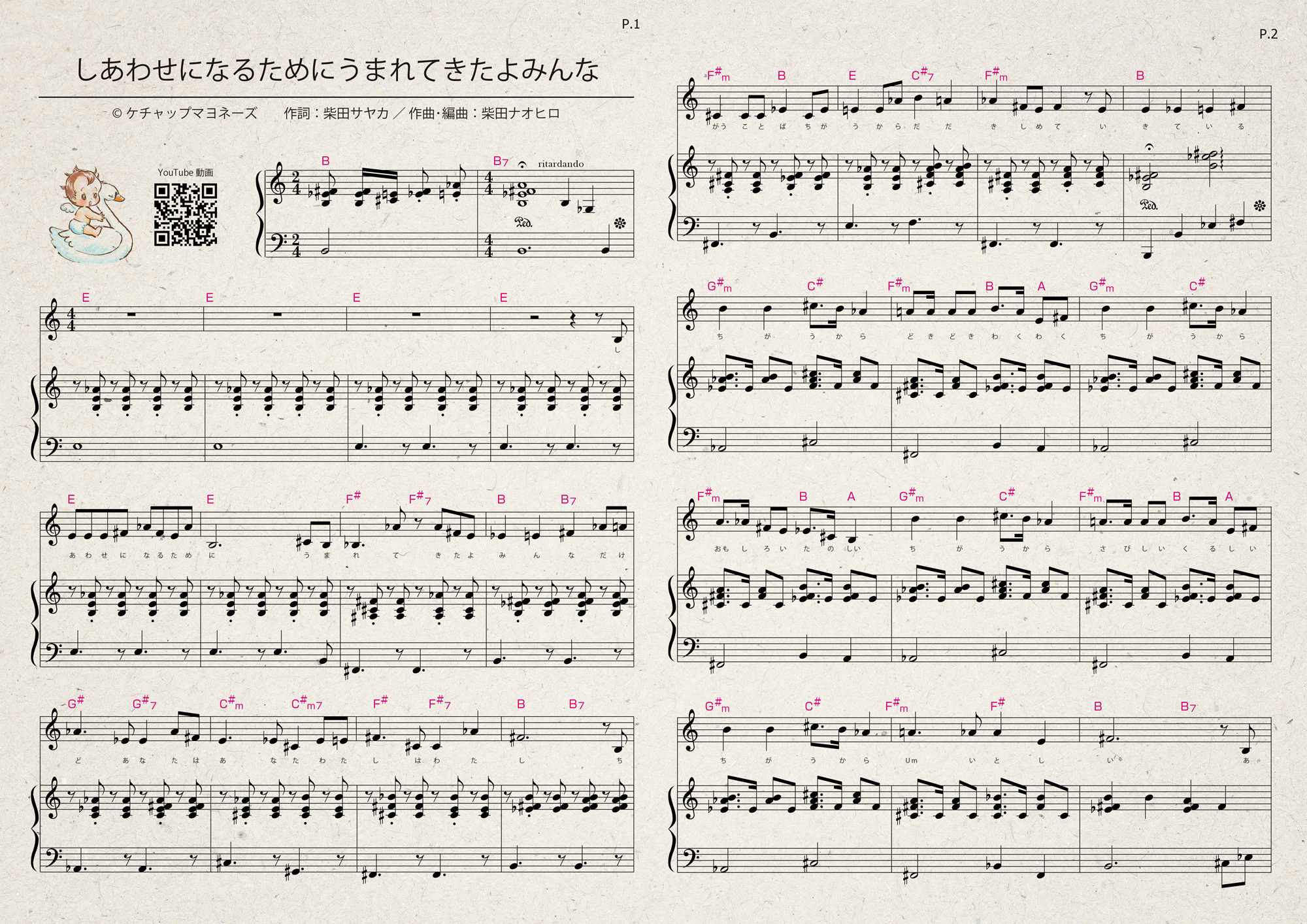 卒園式で歌う用のピアノ楽譜【しあわせになるためにうまれてきたよみんな】を制作しました♬