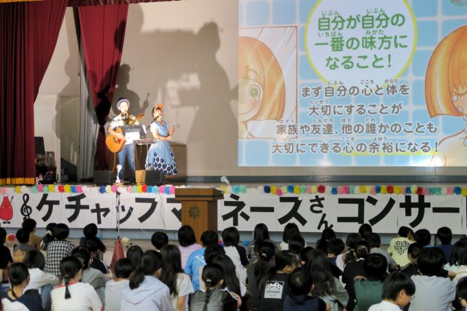 南足柄市・岡本小学校PTAコンサート講演会『命の大切さ、家族や友達の大切さ』2回公演で楽しく元気に遊んで学べました♬