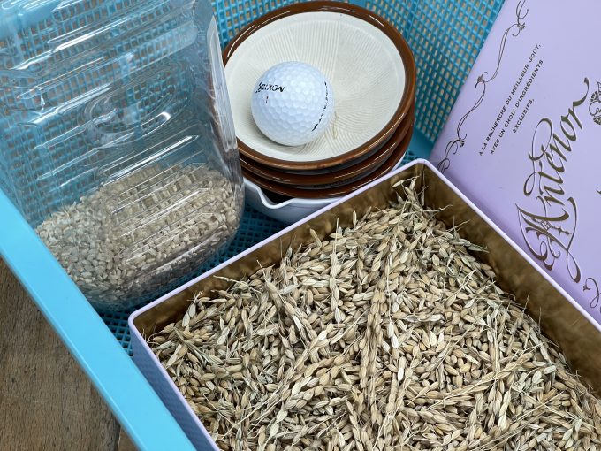 すり鉢とゴルフボールでモミ殻を取ったりするそうです。一粒も大切にしてね☆