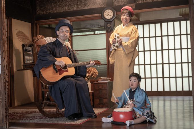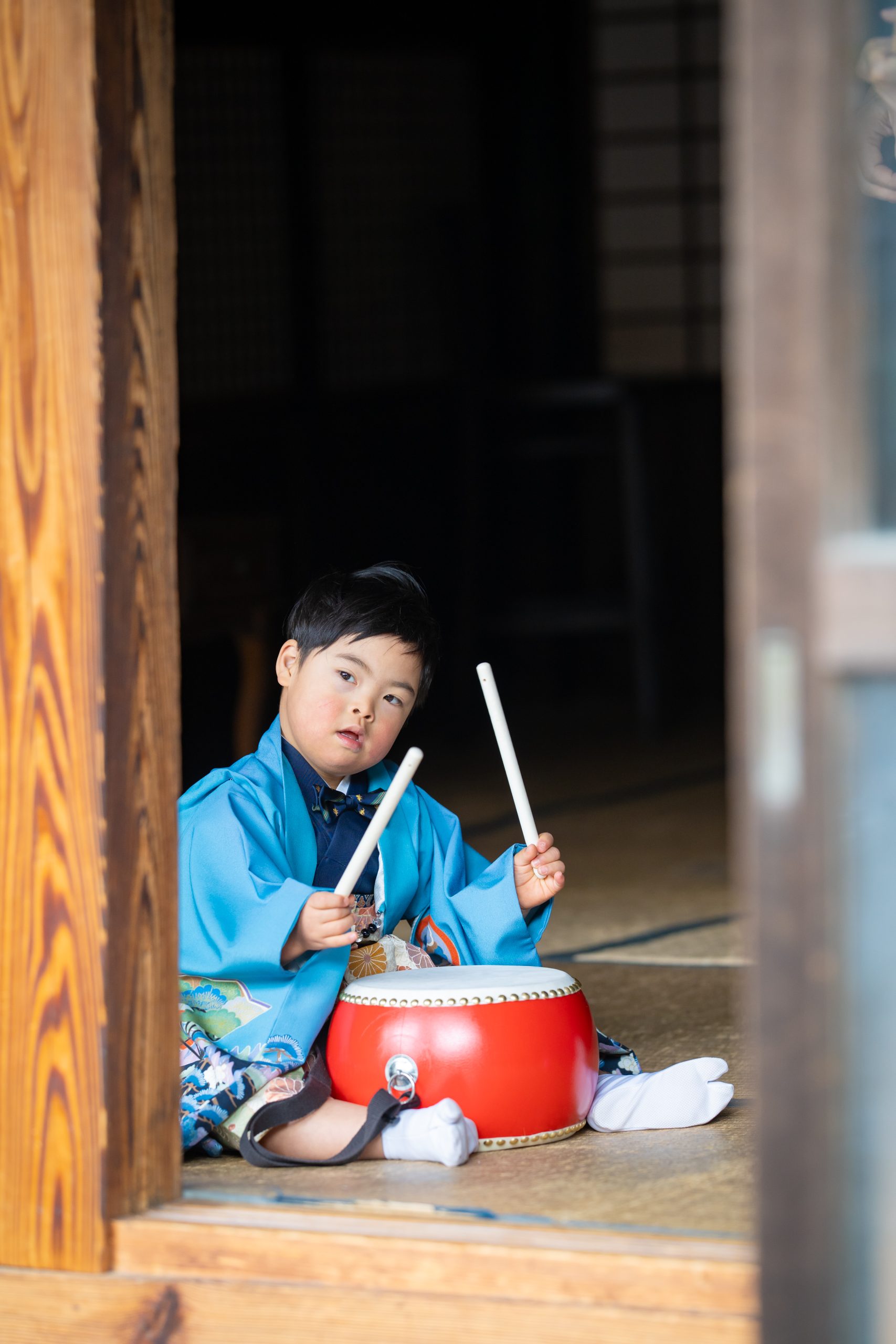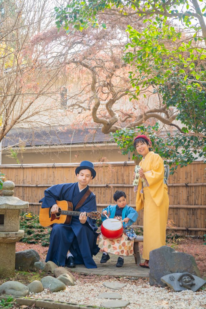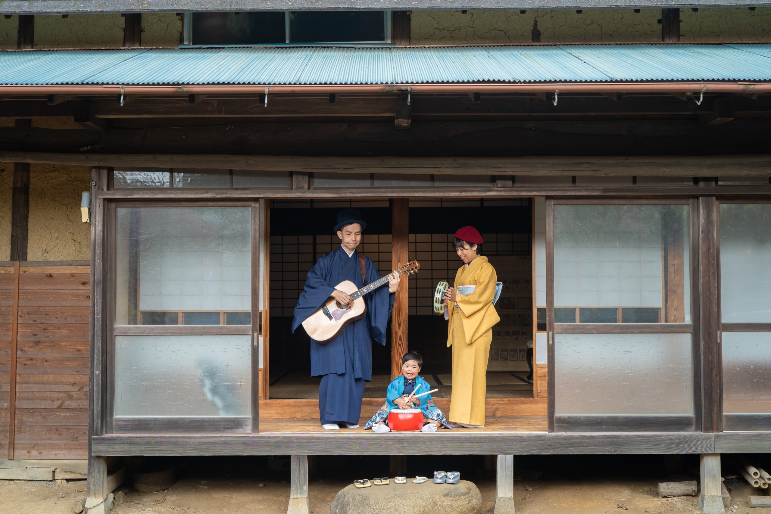 七五三の撮影会@寺家ふるさと村の古民家〜ケチャマヨ家族らしく演奏シーンも撮って頂きました♬