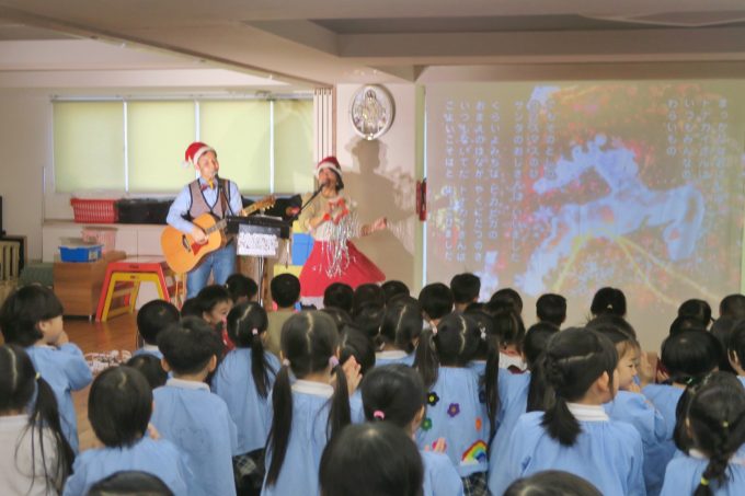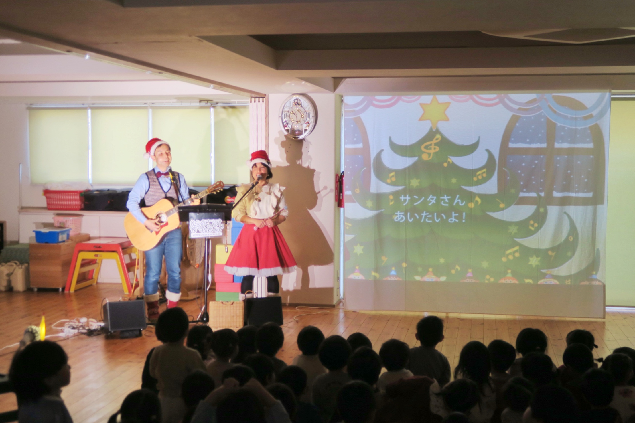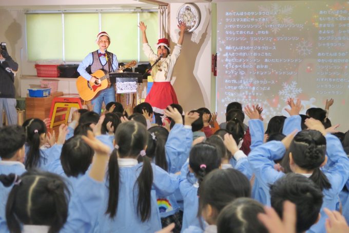 横浜市鶴見区・みつる保育園でのクリスマスコンサートはサンタさんも登場して大盛りあがり!