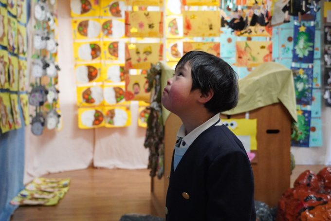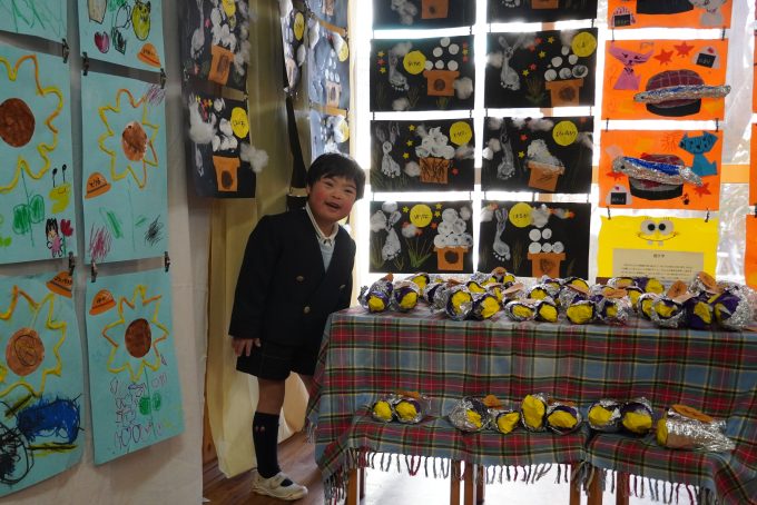 土曜日だけど幼稚園へ。この1年のクラスでの制作物の作品展✨