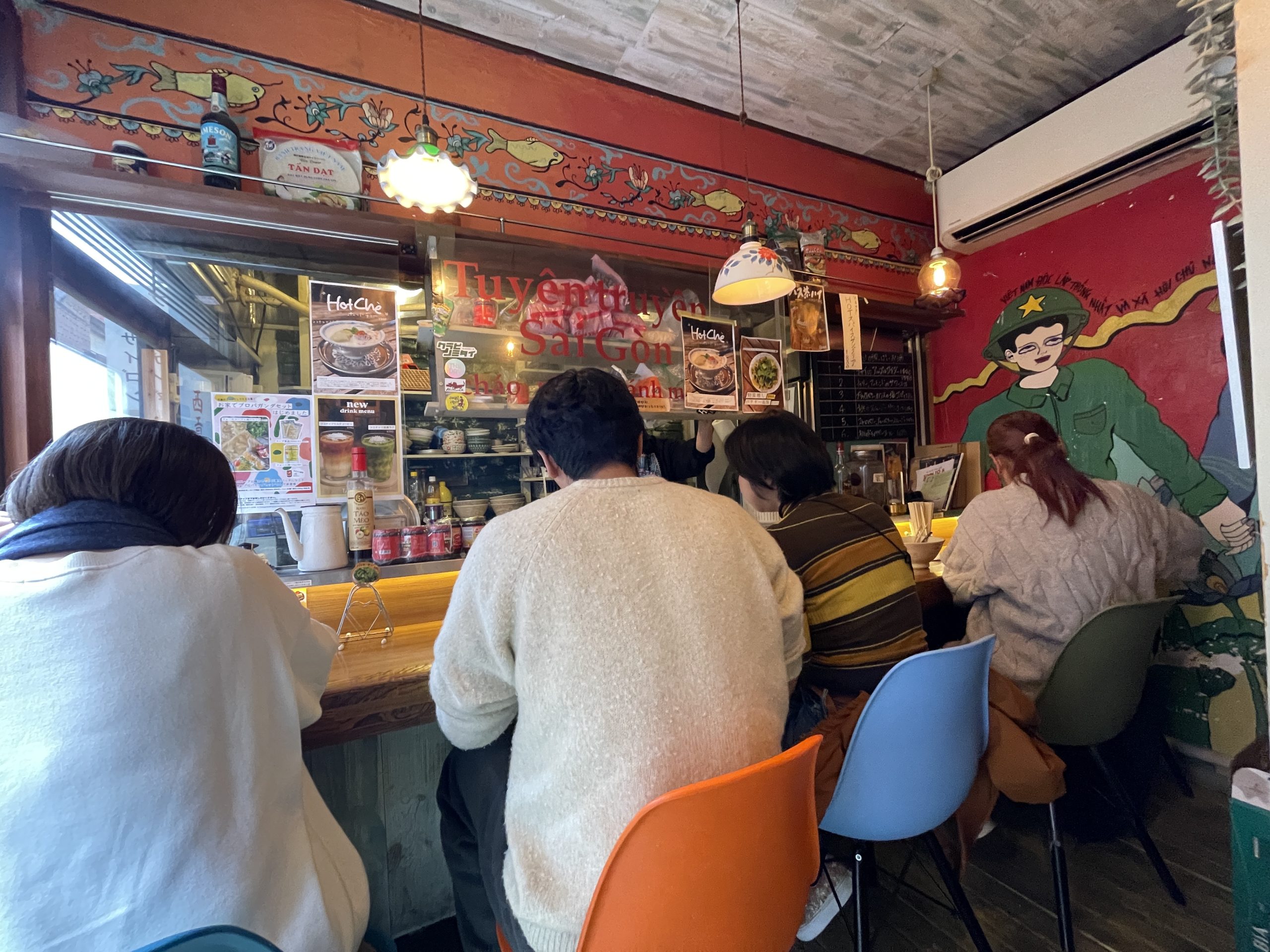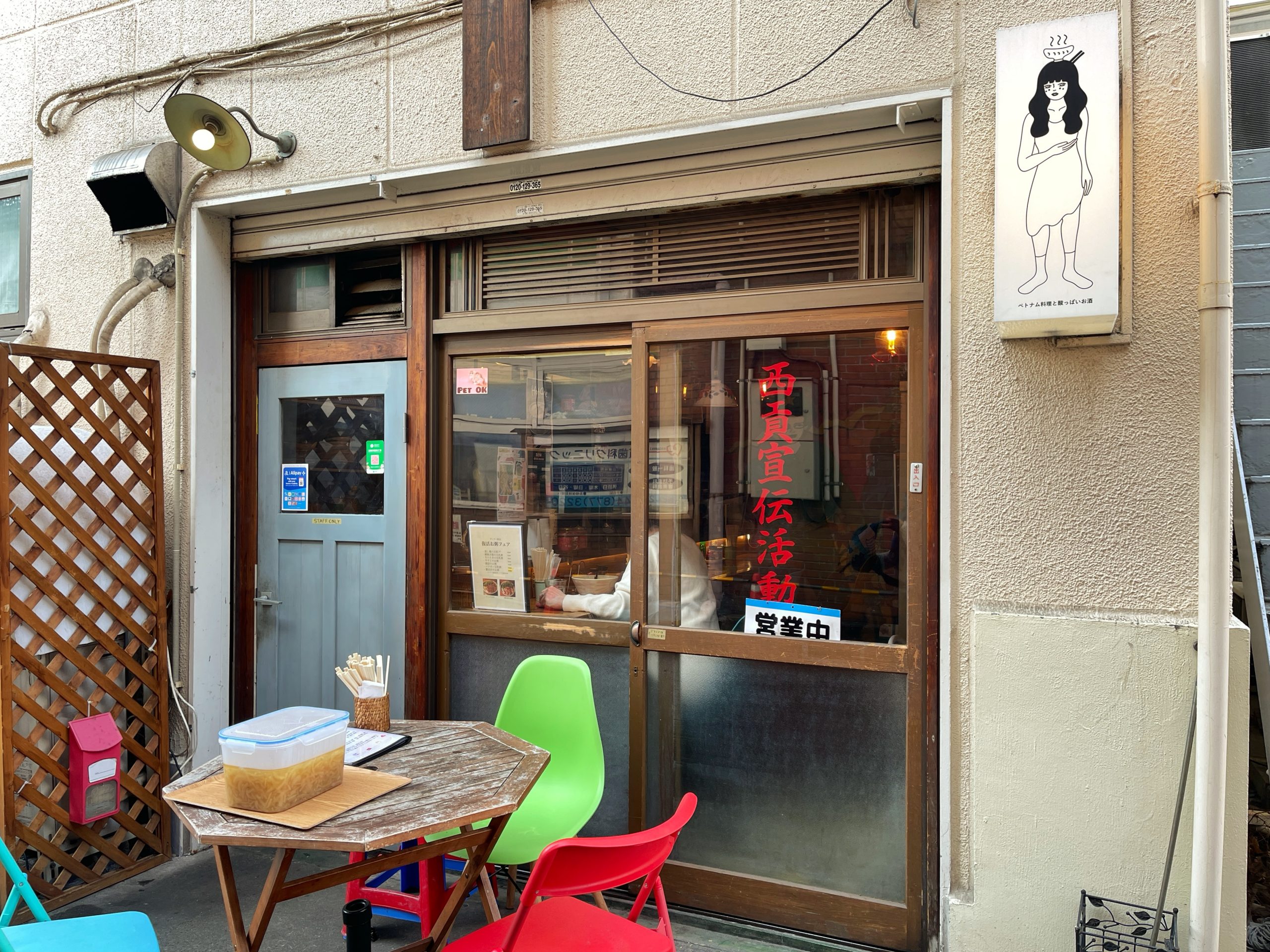 この味のある壁のイラストは店主さんが描いたそうで、現地感満載のお店❣️