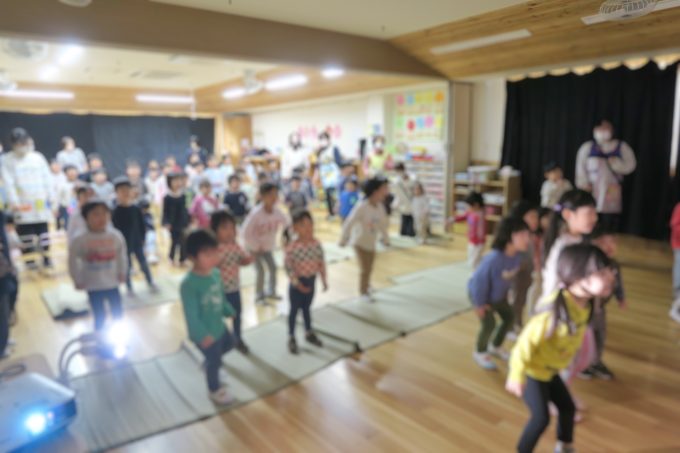 全園児が集まって元気いっぱいに歌って踊ってジャンプして‼️