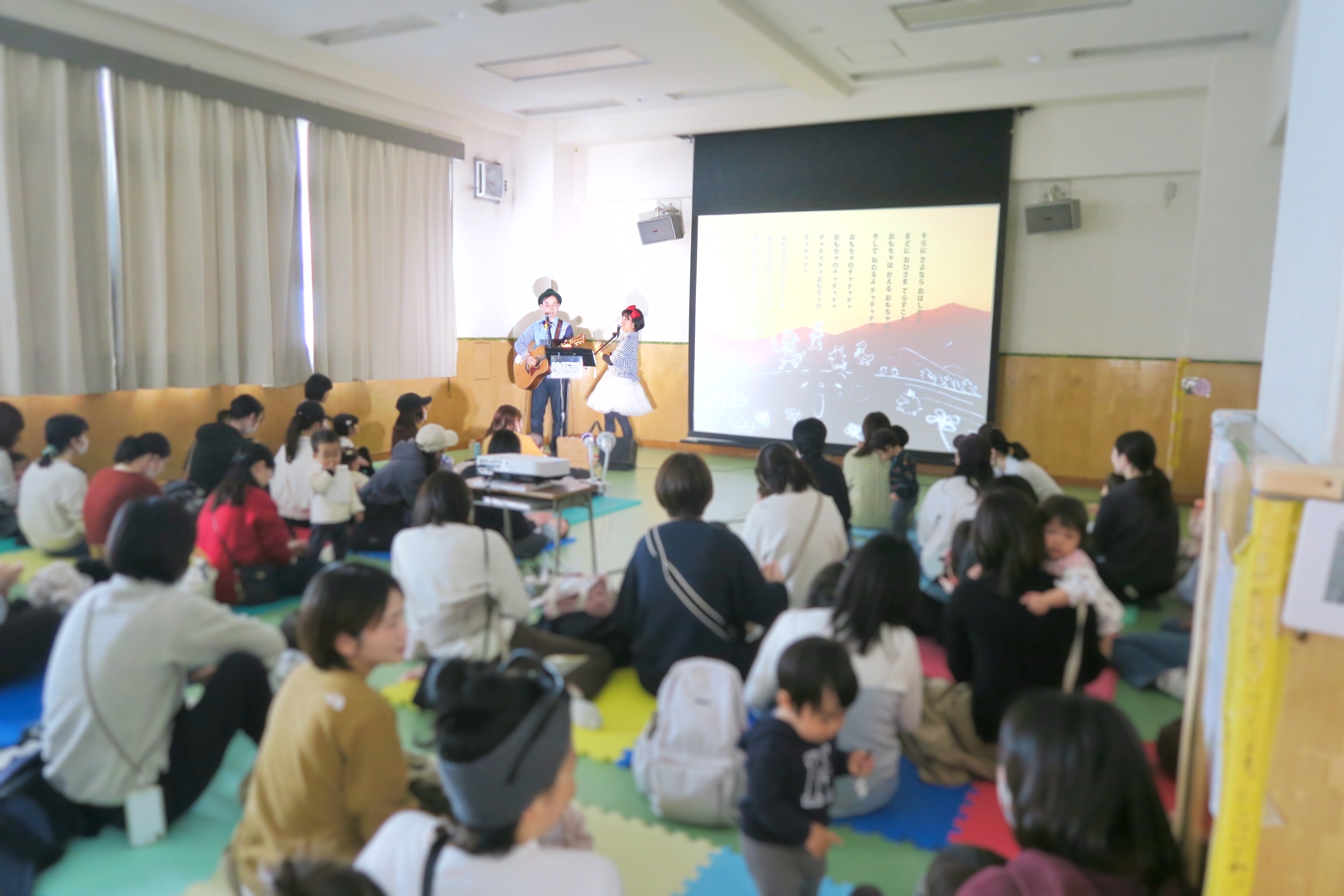 最初はおどおどしていた子も歌が始まるとママのお膝でじっくり聴いてくれました♬