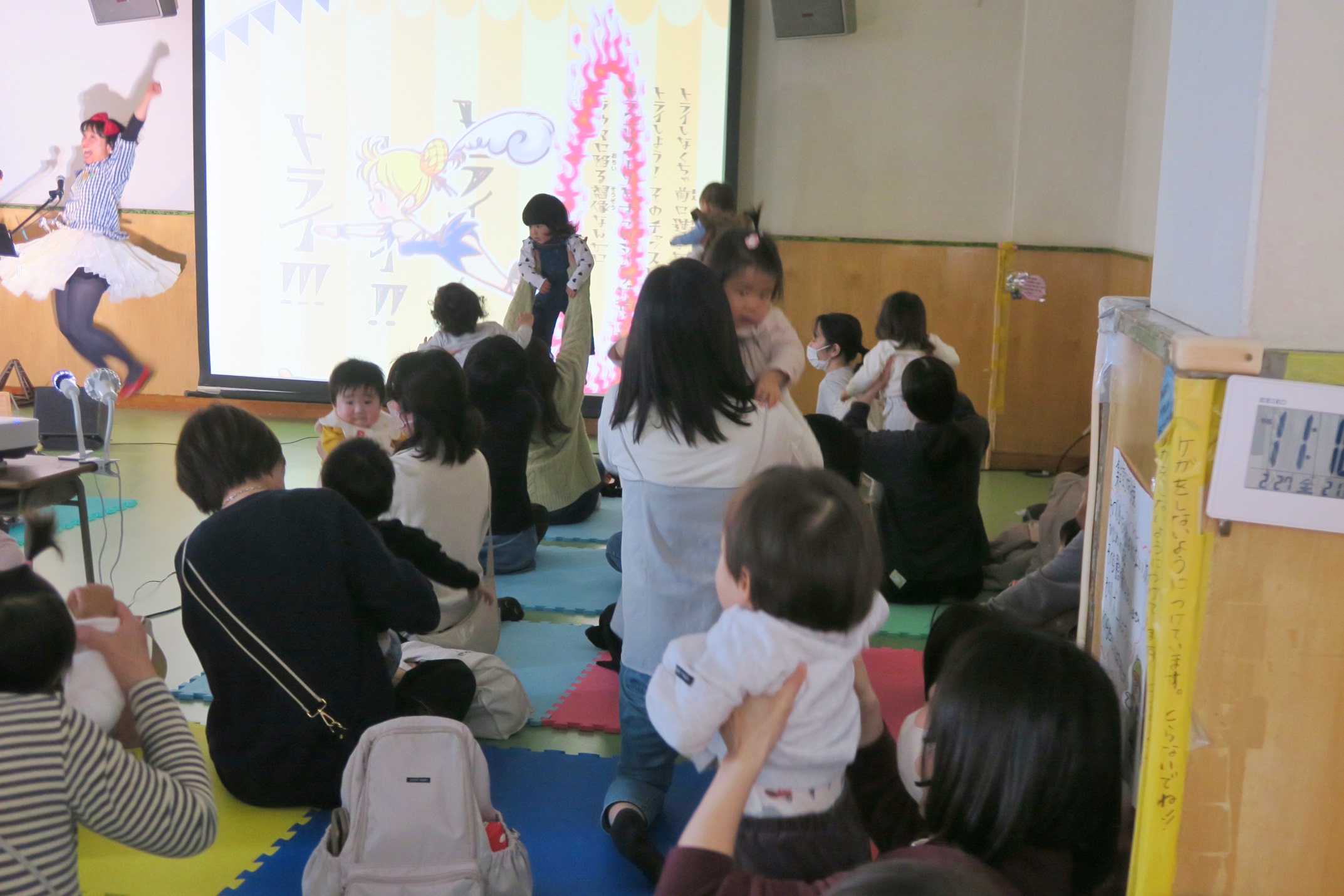まだ小さなみんなだけど、目がキラキラして動くイラストに興味津々💕